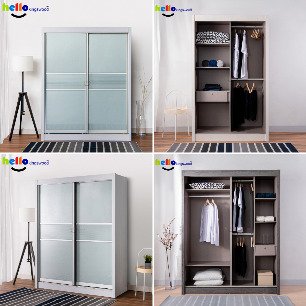 12 months manufacturer warranty included Material: Solid Plywood Sturdy aluminium door frame Strong aluminium hanging bar Durable full extension drawer slides Width: 4, 4.5, 5, 5.5, 6ft Dimensions: H77.5" X D23.5" Frame Colour: Available in 9 trendy colours Scanik Door Design: Metallic Silver (Glass) + Metallic Silver Lines (Glass) Please PM us if you are looking for height 2.4m sliding wardrobes.
