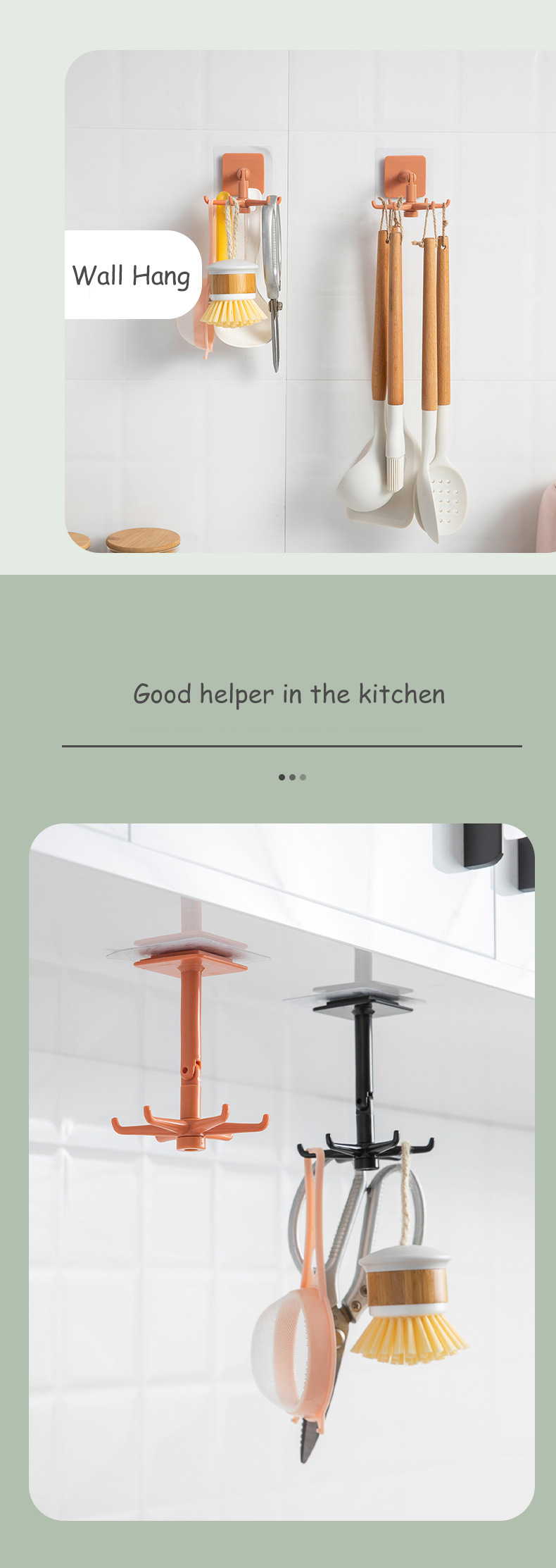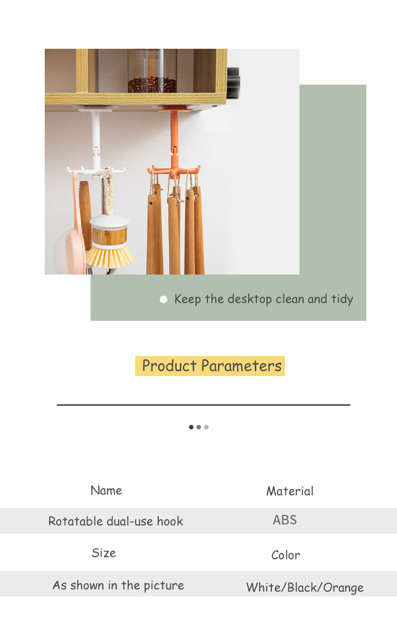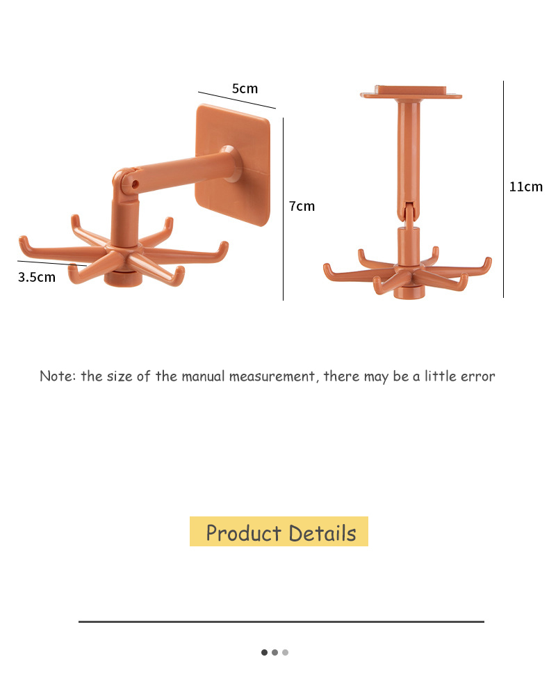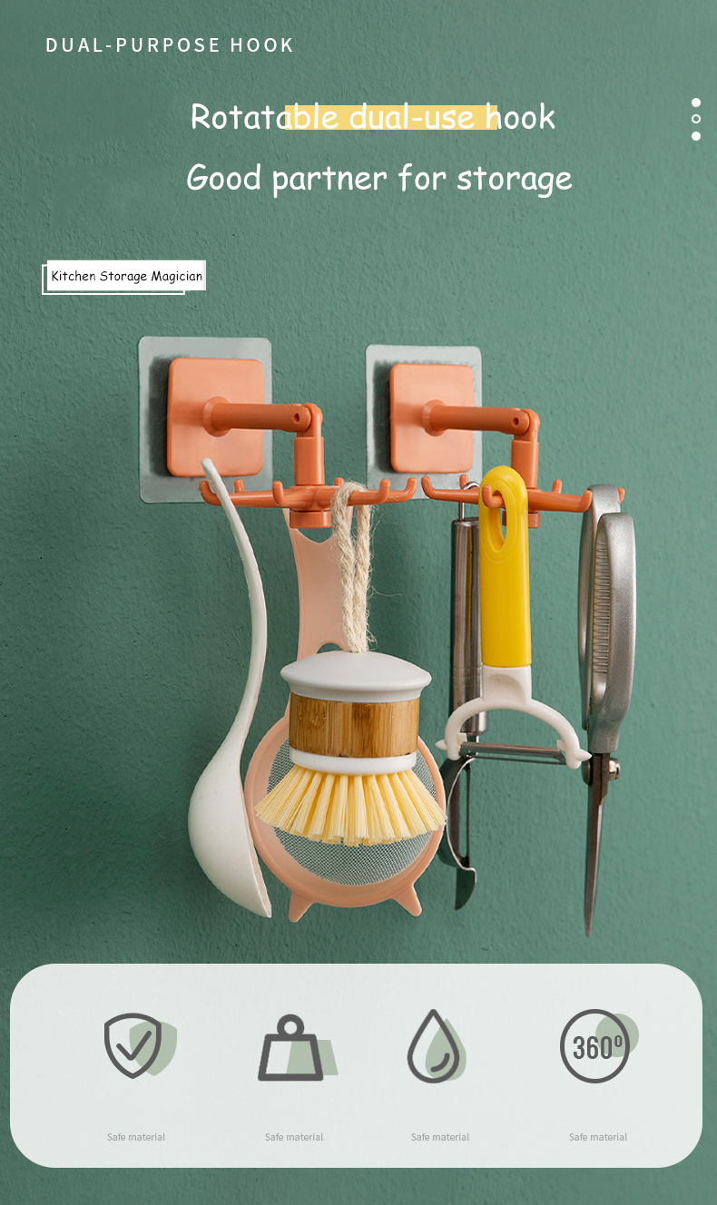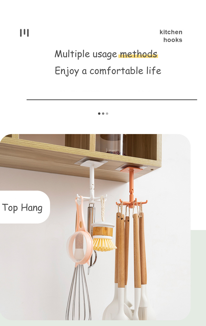 Homy 360°可旋转6钩衣架厨房小钩壁挂式挂钩自吸式厨房浴室挂钩架可调节多功能厨房挂钩