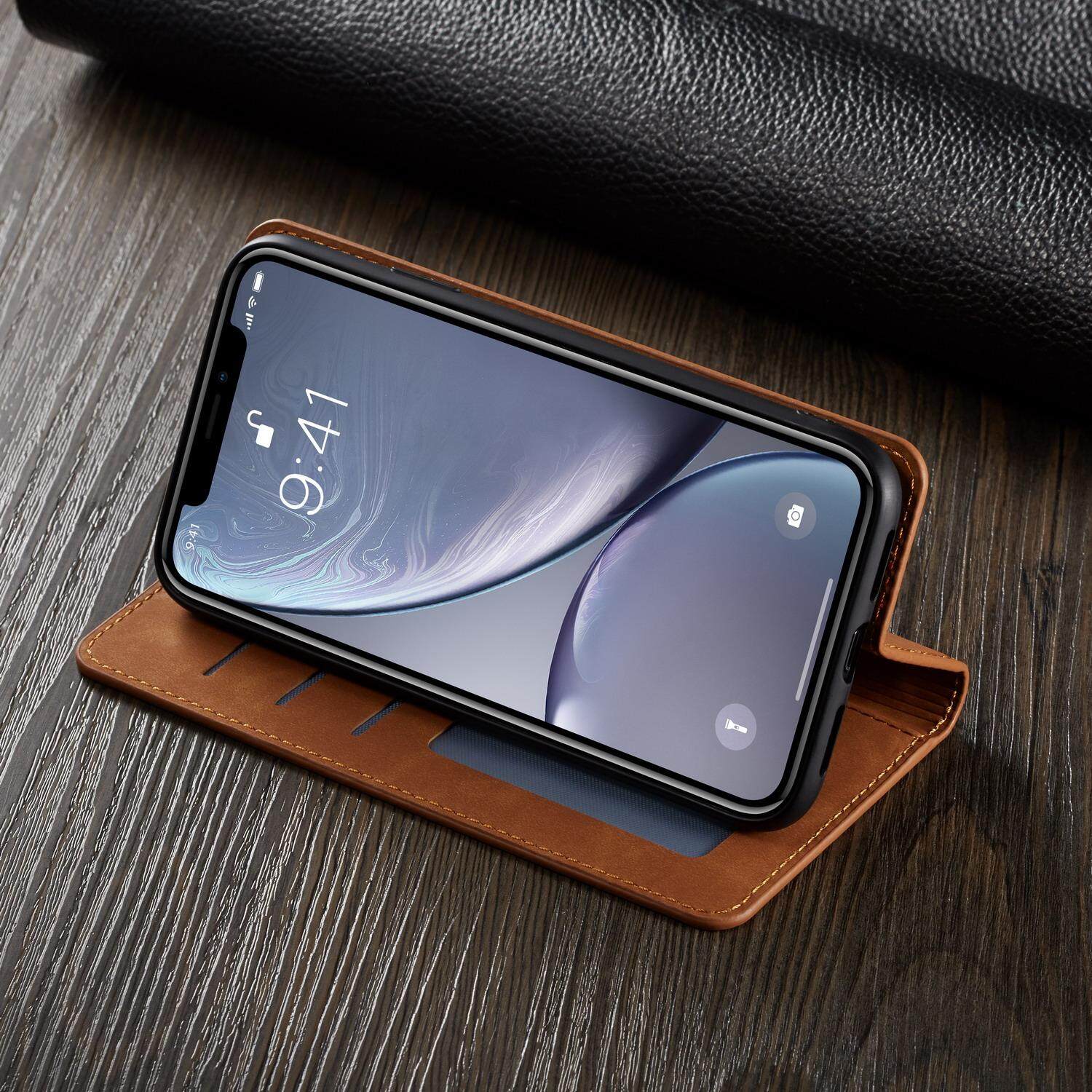 Iphone Xr 11 12 13 14 pro Xs Max X Card Wallet Holder Cover, Da sang trọng Vỏ điện thoại lật từ tính cho Iphone 8 7 6 Plus