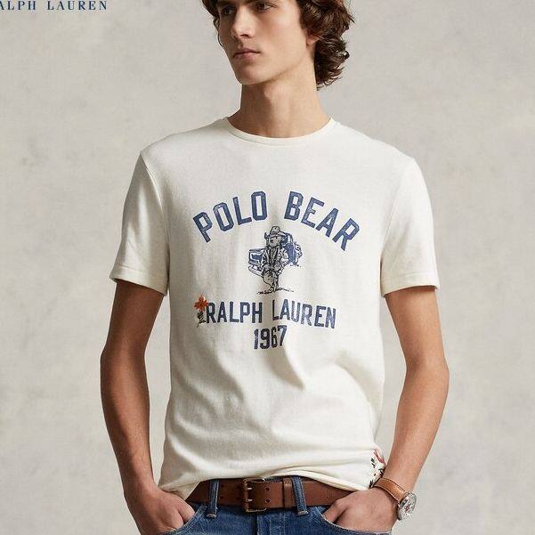RL Polo Bear T-shirt bông in giản dị phù hợp với tay áo ngắn
