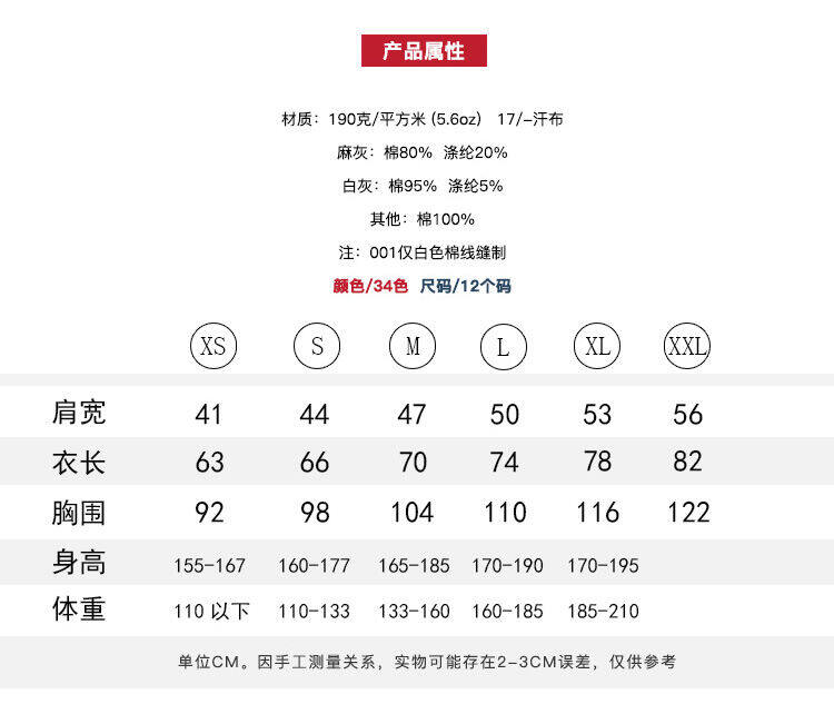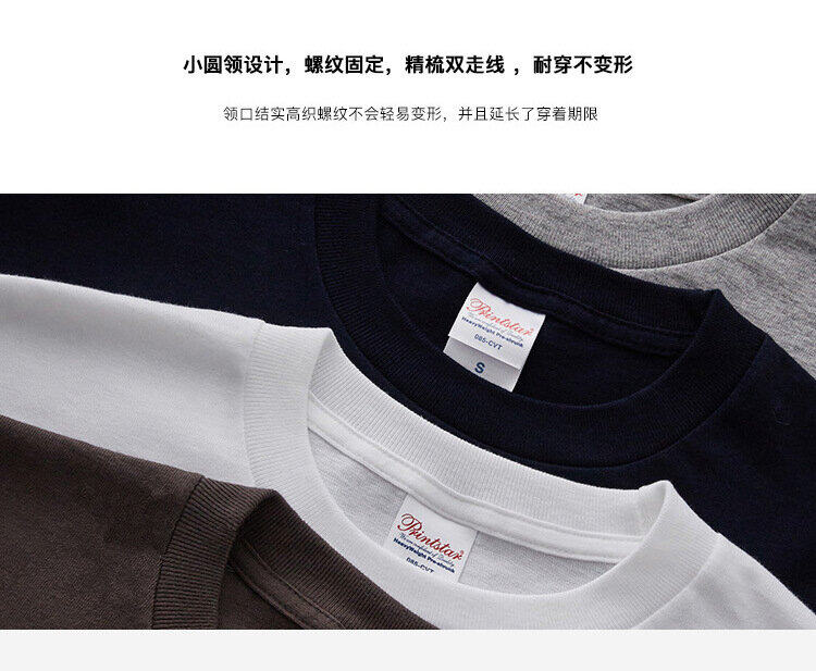 190G Printstar Pure Cotton Black and White Short-Sleeved T-shirt Men's and Women's Half-Sleeved Solid Color round Neck T-shirt Base Shirt
