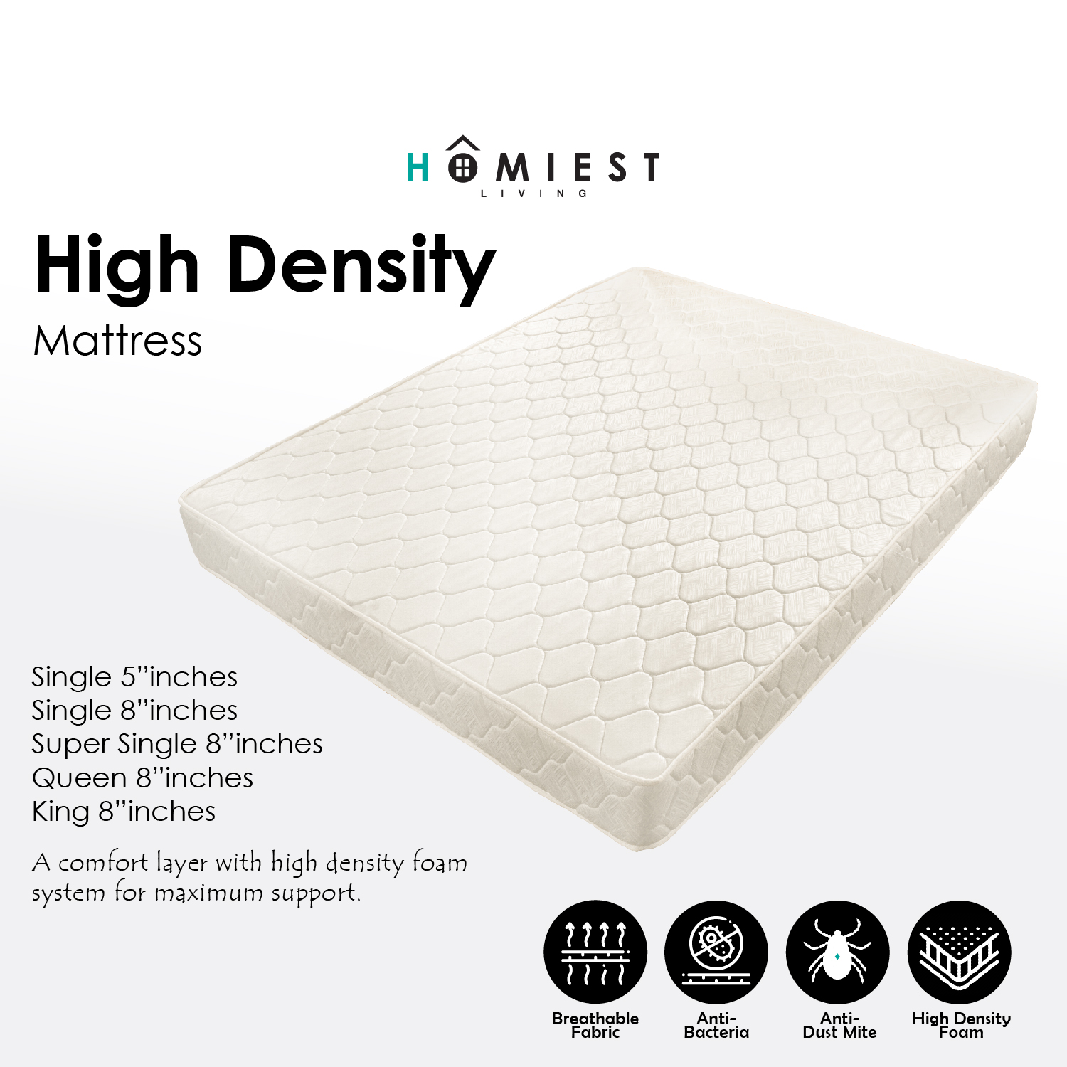 (Miễn phí cài đặt) Homest 8 inch mật độ cao bọt nệm độ cứng trung bình/Single/Super Single/Queen Size/King Size